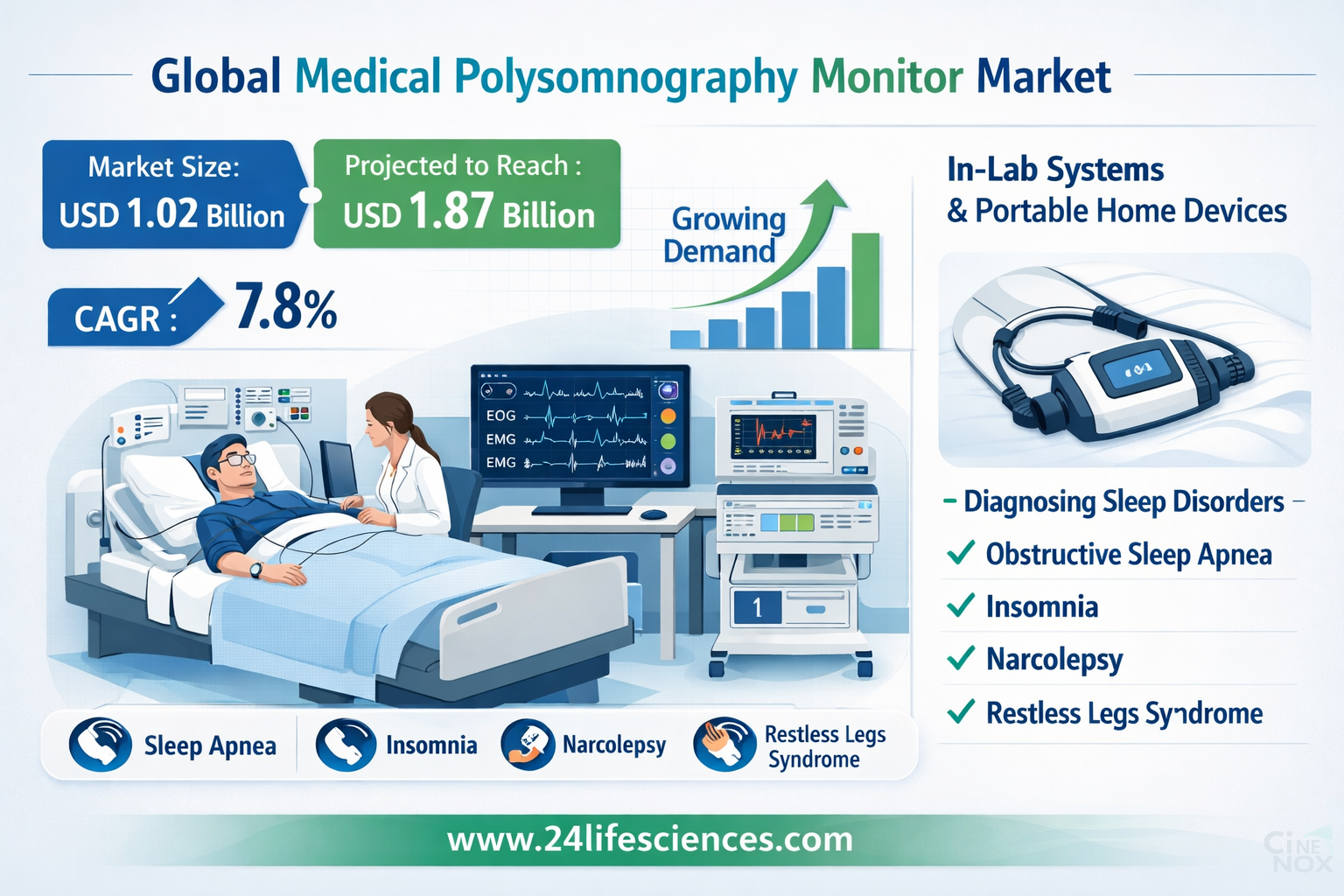 According to a newly published market research report by 24LifeSciences, the global medical polysomnography monitor market was valued at USD 1.02 billion in 2024 and is projected to reach USD 1.87 billion by 2032, growing at a compound annual growth rate (CAGR) of 7.8% during the forecast period 20252032.