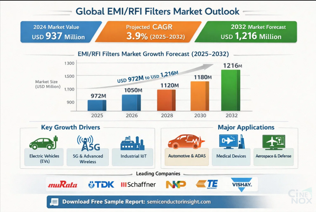 EMI/RFI Filters Market to Reach $1.21B by 2032 Driven by EVs, 5G Infrastructure, and IoT Growth
