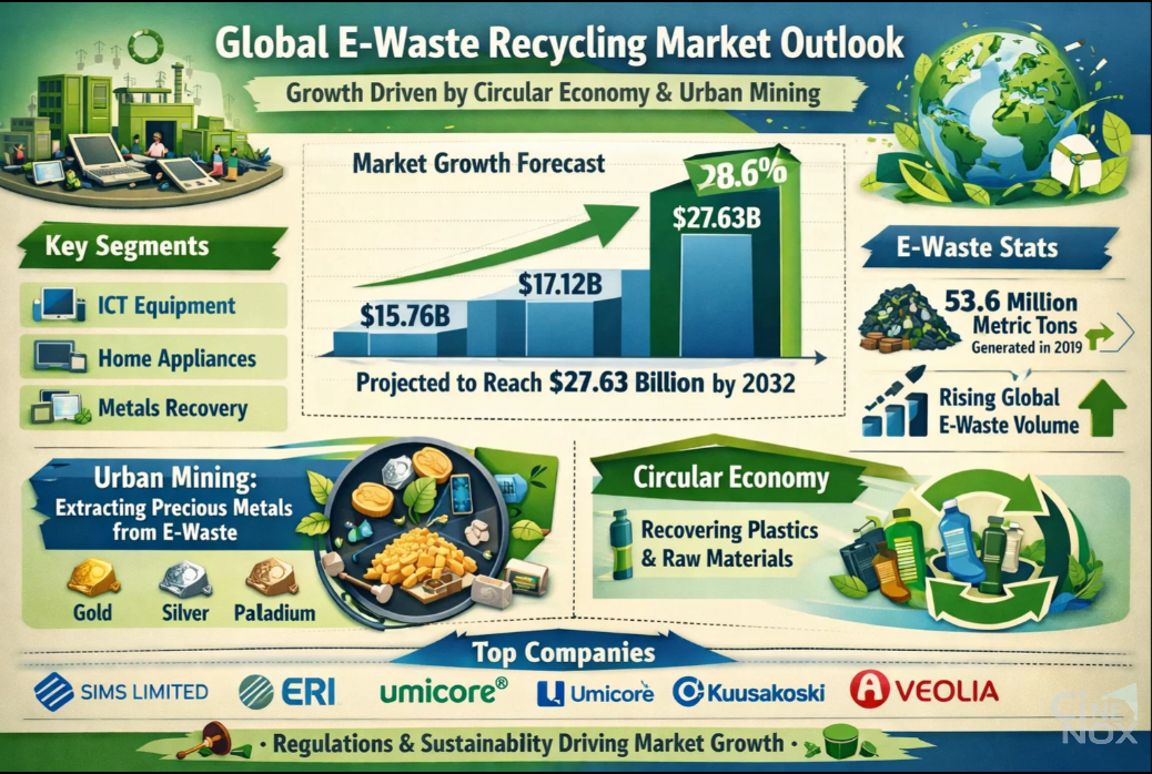 Global E-Waste Recycling Market to Hit $27.63B by 2032 | Circular Economy & Urban Mining Driving Growth